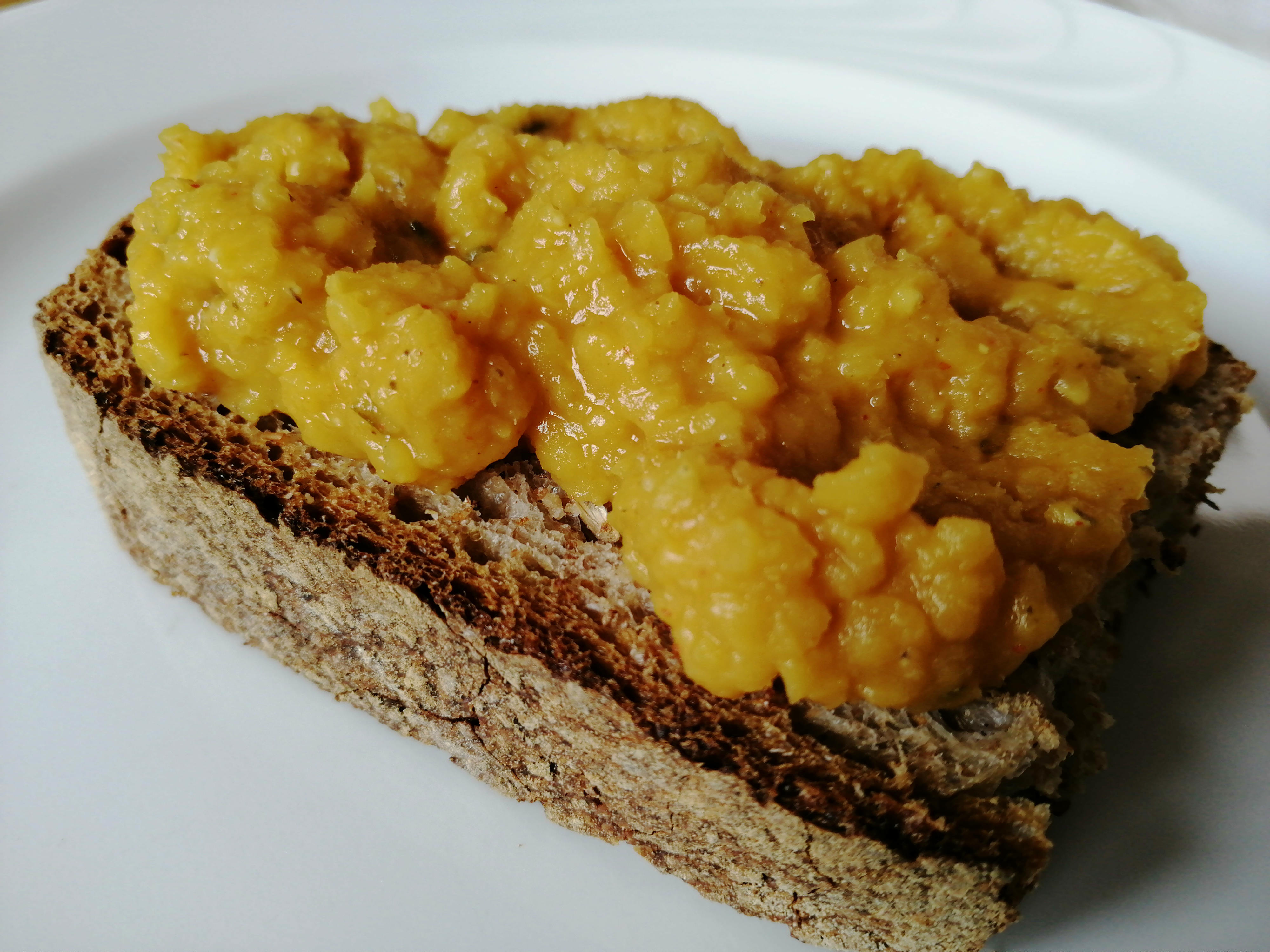 Con un po’ di pane, una sfiziosa crema di lenticchie rosse, un pomodoro e qualche oliva diventa un vero e  proprio pasto completo!