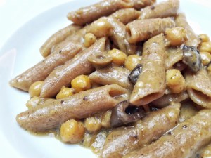 Pasta integrale con ceci al curry e latte di cocco