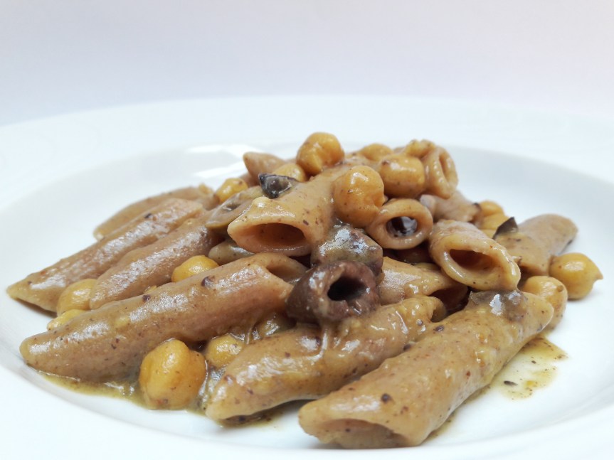 Pasta Timilia cotta ad assorbimento con ceci e olive taggiasche